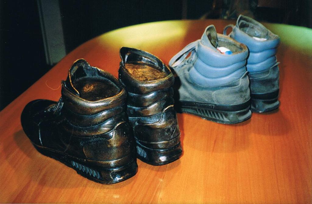 Urn replica van de echte schoenen
